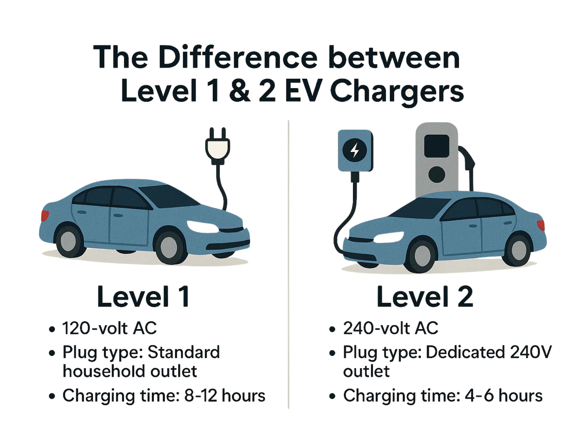 Understanding the different types of EV chargers is the first step in choosing the right setup for your home. The type of charger you choose will impact charging speed, installation requirements, and whether your electrical panel needs to be upgraded.